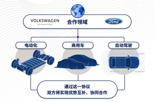 6月10日,福特大眾同時宣布,福特汽車公司和大眾汽車集團正式簽署戰略聯盟協議,雙方將實現在中型皮卡、商用車和電動車領域內的優勢互補、協同合作。