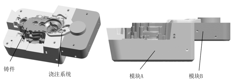 實踐驗證表明,優(yōu)化方案不僅提高了模具的質(zhì)量、可維修性以及壓鑄成形的成品率,同時降低了模具的加工難度,提高了生產(chǎn)效率和模具壽命。