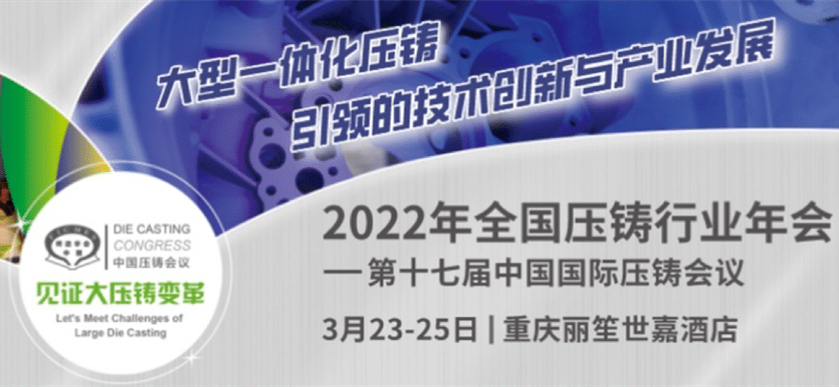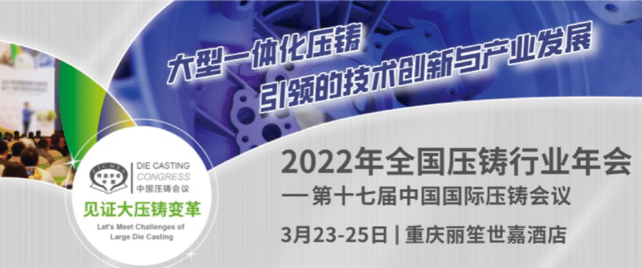 2022年全國壓鑄行業年會將于3月23-25日在重慶隆重召開。