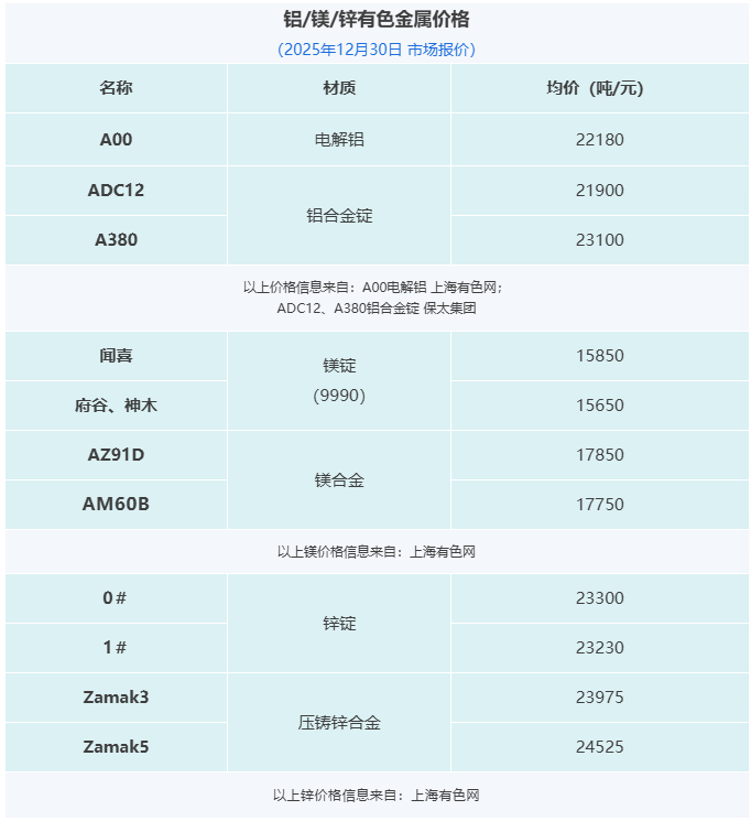 壓鑄早報2025/12/31星期三