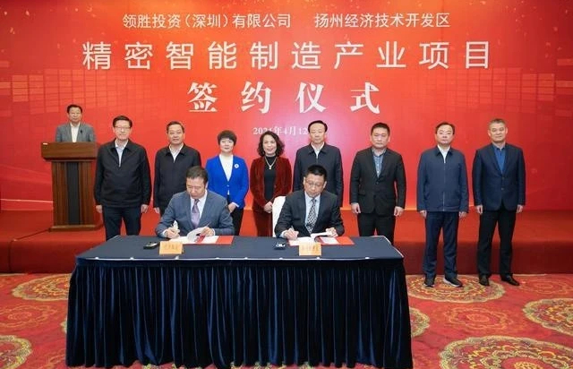 4月12日,領益智造控股母公司--領勝投資(深圳)有限公司揚州精密智能制造產業項目簽約揚州經濟技術開發區。