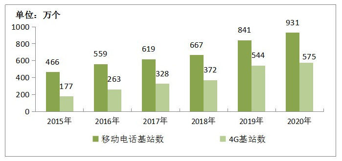 2020年,全國移動通信基站總數達931萬個,全年凈增90萬個。其中4G基站總數達到575萬個,城鎮地區實現深度覆蓋。