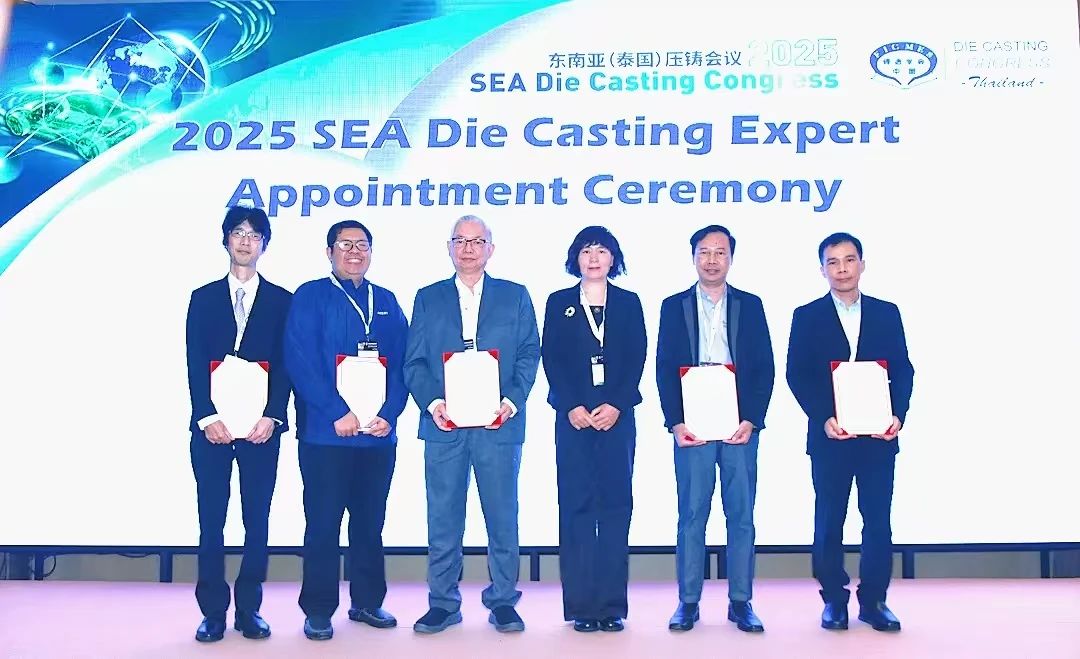 為進一步激發行業活力、弘揚服務精神,樹立行業服務典范,推動壓鑄行業實現健康、可持續發展。中國機械工程學會鑄造分會在此次會議現場特別頒發“年度壓鑄行業服務之星”獎項,以表彰那些在壓鑄行業服務領域表現卓越、為行業發展做出突出貢獻的個人,獲獎者分別為臺達電子(泰國)的高壓壓鑄專家Adisak Banpot、Storemate的董事總經理Tanwa Longthong以及泰國國王科技大學副教授Phromphong Pandee,Preston總裁Pattrawut Khunwipusit。