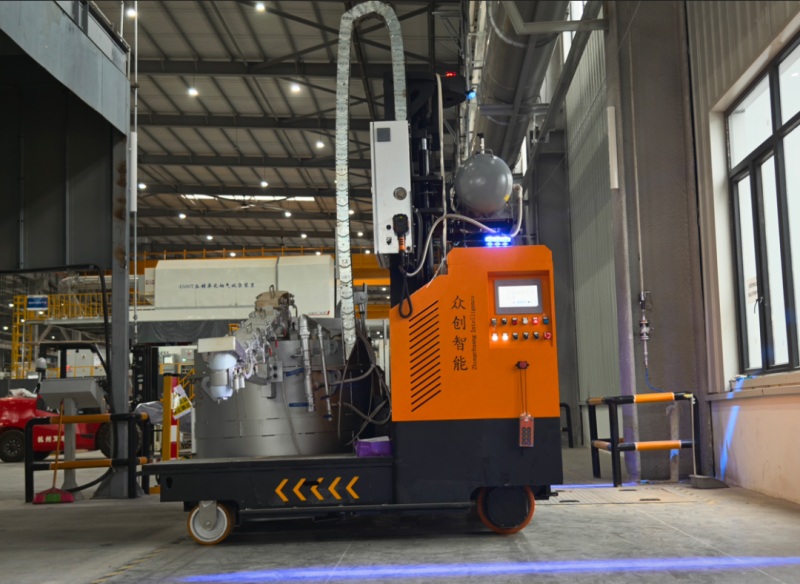 技術革新特點 ◆ 由OAGV車體、氣壓式定量包以及鋁液信息管理系統三大核心部分組成,形成了一個完整、智能的鋁液配送解決方案。 ◆ 采用激光SLAM導航方式,確保了高精度定位和自主導航的能力。在運輸過程中,AGV通過雷達及紅外雙重安全保護系統,實現了自動避障和緊急停止功能,確保了運輸過程中的人、物安全。同時,AGV的靈活性和多方向行駛能力,使得鋁液配送更加高效和便捷。 ◆ 采用氣壓式定量包設計,鋁水通過升液管由氣壓平穩地注入目標保溫爐,有效減少了鋁液的溫降(10℃/h)和氧化渣(80%)的生成。同時,其密閉式結構避免了鋁液的意外飛濺,極大地提高了生產安全性。注鋁速度平穩且快速:3-8Kg/s。 ◆ 鋁液信息管理系統作為配湯線的“中樞神經”,集成了鋁液信息看板、缺鋁呼叫機制、實時計算控制系統、AGV調度系統以及ZCD定量爐控制系統等核心模塊。這些系統相互協作,共同為每臺保溫爐和定量爐提供智能化、安全化、高效化的鋁液配送服務,確保整個流程的順暢與精準。 創新產品優勢 ◆ 工廠信息可視化、無人化、智能化。 ◆ 高效無誤、精準配湯。 ◆ 更安全的轉運、更高品質的鋁液。 專利情況 專利號:ZL2023 21343358.5 經濟效益 ◆ 規劃電子地圖,實現車間無人化運行,代替人工,鋁水轉運及注入過程安全、可控。 ◆ 密封式氣壓定量包,溫降低(10℃/h),氧化渣減少80%,綜合節約成本8萬/年。 發展趨勢 不僅能夠提升了工廠的生產效率和安全性,也為整個汽車制造行業的智能化升級樹立了典范。實現了工廠鋁液配送的自動化、程序化,降低了勞動強度,提供了更安全的工作環境。 企業簡介 寧波眾創智能科技有限公司(簡稱“眾創智能”)始創于2014年,由北航、同濟及武大研發人員組成核心技術團隊,傳承華為的優秀研發基因,立根嵌入式系統,為鑄造企業搭建數字化、信息化的智能裝備。 秉持實事求是、厚積薄發的工匠精神,公司推出多個業界之首:首套AGV智能鋁液輸送線,首套轉子在線除氣定量爐,首臺全閉環鋁合金定量爐(耗材破損造成漏氣,系統通過自我修正仍可正常工作)。眾創智能擁有授權專利20余項,為長安、三花智控、拓普集團、旭升集團、東山精密、愛柯迪等知名企業提供產品和服務。 聯系我們 評選活動負責人
