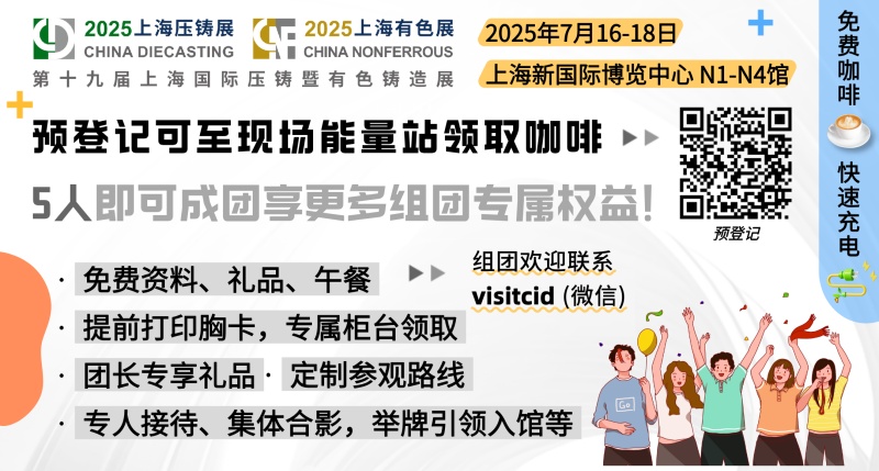 本次活動得到了鑄造行業生產力促進中心、中國機械工程學會鑄造分會、《壓鑄周刊》傳媒、中鑄科技、上海中昱知識產權代理有限公司的大力支持,特此鳴謝! ?? 2025上海國際壓鑄有色展 展會以“強基鍛鏈 融通發展”為主題,覆蓋四個館,展出面積達到49200平方米,截止目前,展會已形成570+高壓壓鑄及有色合金特種鑄造產業鏈的強大展商陣容!實現了從高壓壓鑄向有色合金多種鑄造工藝的進一步突破和延伸。特別新增N4館,為新老展商提供了更加廣闊的展示舞臺。 本屆展會將繼續為預登記觀眾提供包括免費咖啡、午餐券(組團專屬)、供應采配會等專屬權益。觀眾預登記現已開啟,歡迎業內人士掃碼報名,共赴新質之約! 展位即將售罄,搶占最后商機,預訂從速!