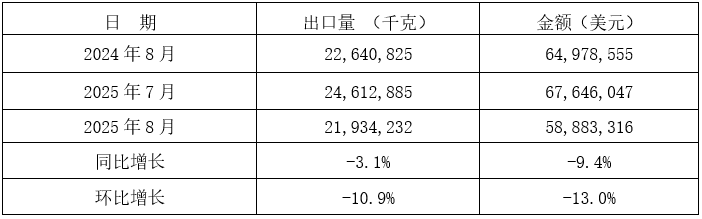 表 13:2025年8月軋輥同比、環(huán)比出口情況