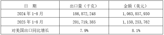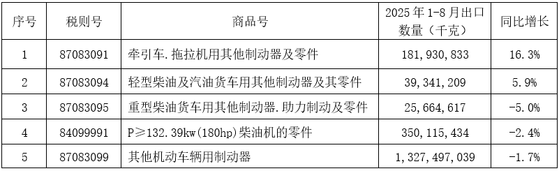 表 8:2025年1-8月汽車零部件對美國出口情況