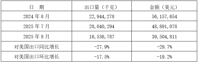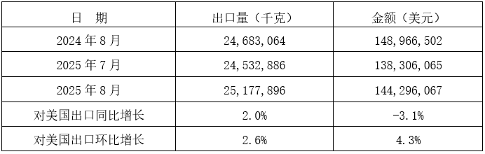 表 3:2025年1-8月黑色鑄件對美國出口情況