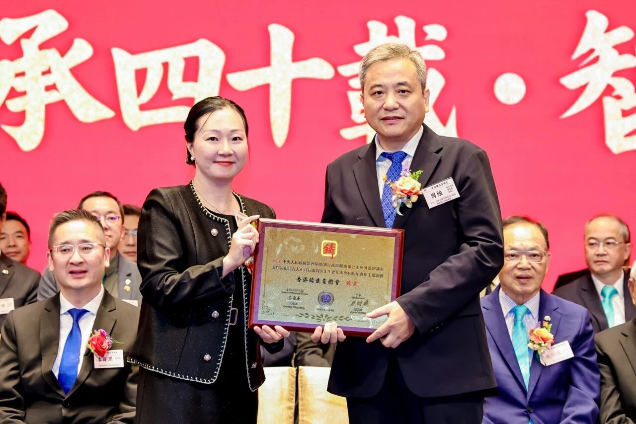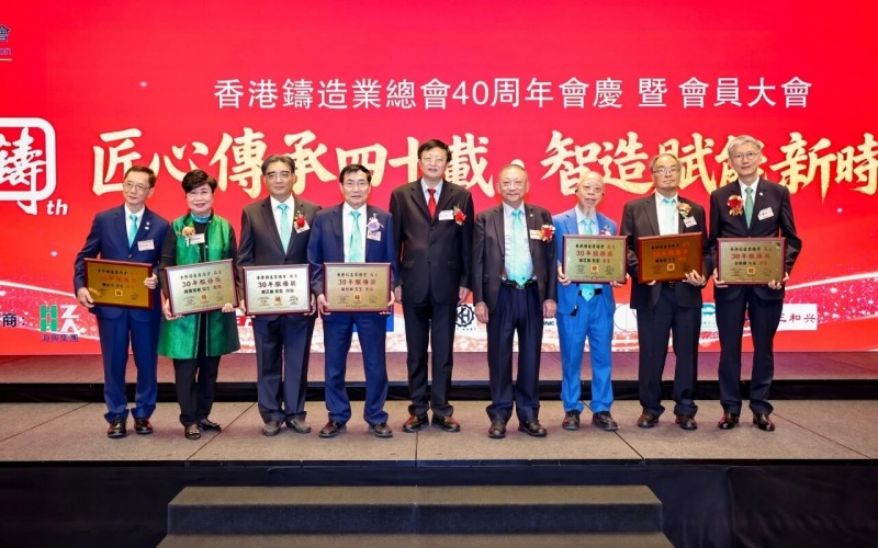 ![]() 匠心傳承四十載·智造賦能新時代 冬韻悠揚,禮贊華章。2025年11月11日下午,香港鑄造業(yè)總會40周年會慶暨2025年度會員大會于香港麗晶酒店盛大舉行。這一盛會,既見證了香港鑄造業(yè)總會四十載櫛風沐雨、砥礪奮進的輝煌歷程,更凝聚起全體會員攜手并肩、共繪行業(yè)未來藍圖的磅礴力量。 香港鑄造業(yè)總會會長梁詩雅女士及總會理事會領導架構成員,香港商務及經濟發(fā)展局副局長陳百里博士,中央人民政府駐香港特別行政區(qū)聯(lián)絡辦公室經濟部副部長兼貿易處負責人周強先生,亞洲鑄造業(yè)聯(lián)合會主席、中國機械工業(yè)聯(lián)合會副會長、中國鑄造協(xié)會會長張立波先生,以及香港鑄造業(yè)總會會員企業(yè)代表、來自全國各省市鑄造行業(yè)協(xié)會/學會領導、專業(yè)媒體記者等400余名嘉賓齊聚一堂,共同見證這一重要時刻。 會員大會:總結過往,展望新程 當日下午17:00,會員大會在莊嚴的國歌聲中拉開帷幕,現(xiàn)場氛圍莊重有序。梁詩雅會長率先登臺,作全面匯報總會全年會務工作及未來展望。她指出,過去一年,總會舉辦及參與各類行業(yè)活動達34場,活動內容涵蓋技術交流、市場拓展、人才培育等多個領域,成功搭建起多元交流平臺,促進了會員企業(yè)間的聯(lián)動與合作。同時,總會積極拓展國際市場,為會員企業(yè)提供更多發(fā)展機遇。