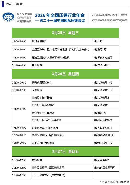 本次會議會議以“鋁”穩行遠,“鎂”啟新程為主題,旨在匯聚全球學術界、企業界、車廠等各方力量,以技術交流推動“鋁穩基業,鎂開新局”的產業格局,共同繪制輕量化時代的全球壓鑄產業新藍圖。誠邀壓鑄同仁蒞臨參會!