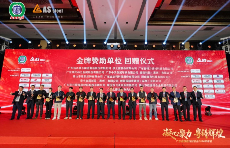 本次年會的圓滿舉辦,離不開行業優秀企業的鼎力支持。廣東揚山聯合精密制造股份有限公司、伊之密股份有限公司、廣東省鑄力鑄材科技有限公司、廣東肇慶動力金屬股份有限公司、廣東中天創展球鐵有限公司、嘉瑞科技 (惠州) 有限公司、佛山市雄新壓鑄有限公司、廣東金志利科技股份有限公司、湖南鑫泉科技有限公司、宏豐金屬制品 (惠州) 有限公司、順景園精密鑄造 (深圳) 有限公司、廣東華興隆模具材料科技有限公司、肇慶市飛亞實業有限公司、佛山市桂源鋅合金材料有限公司作為本次年會金牌贊助單位,傾情助力盛會圓滿舉行。主辦方特為各金牌贊助單位回贈紀念禮品,致謝厚愛與支持。
