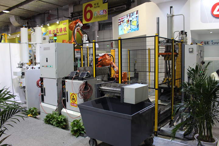 12月1日,2017第七屆國際(東莞)鑄業展(IMCS)在東莞厚街廣東現代國際展覽中心圓滿落幕。作為華南地區規模最大的壓鑄專業展會,IMCS已成為壓鑄產業鏈上下游企業開拓廣東乃至華南市場的最重要的平臺之一,吸引了全國各地的知名企業參展,從上游的壓鑄機、周邊設備及機器人、工業熔爐、合金材料等,到下游的壓鑄件生產和加工企業“競相斗艷”,展示新產品、新技術或新應用,為專業觀眾及買家帶來一場壓鑄業的饕餮盛宴。 力勁無人化壓鑄生產線踐行“中國制造2025” 作為展會主辦方香港鑄造業總會的會長單位、全球產銷量最大的壓鑄機制造商,力勁集團從未缺席國際(東莞)鑄業展。圍繞著當下制造業的主題“中國制造2025”和“工業4.0”,力勁集團展示了自動化壓鑄單元,由一臺鎖模力280噸的IMPRESS-PLUS冷室壓鑄機,配置ABB取件機器人,ABB機器人+安裝沃爾林噴霧頭的噴霧系統、檢測系統、力勁品牌切邊機、冷水機、輸送帶、碼垛設備等組成了無人化壓鑄生產線,主要針對薄壁件而設計,譬如:手機中板、共享單車鎖等產品。
