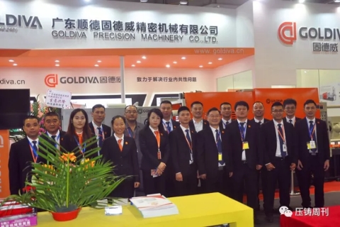 ![]() 固德威參展團(tuán)隊(duì) 2017國(guó)際(東莞)鑄業(yè)展參展商隊(duì)伍有不少“新面孔”。其中,首次參展的廣東順德固德威精密機(jī)械有限公司(下稱“廣東固德威”)就是其一。廣東固德威系一家主要從事冷室壓鑄機(jī)研發(fā)、生產(chǎn)和銷售的新銳企業(yè)。 雖然是首次參展,但是展示的公司整體形象不亞于行業(yè)知名壓鑄機(jī)廠商。無(wú)論是設(shè)備布置、展臺(tái)搭建,抑或是人員著裝,細(xì)微之處彰顯掌舵者“外樹形象,塑造品牌”的決心。今年下半年,廣東固德威推出全新的LOGO(商標(biāo)/標(biāo)志):GOLDIVA。新LOGO作為全面提升公司品牌形象的一部分,寓意“黃金工匠”之意,秉承“解決行業(yè)共性”理念,在公司內(nèi)部弘揚(yáng)工匠精神。 新標(biāo)志 新產(chǎn)品 新形象 在展會(huì)上,廣東固德威以“新標(biāo)志、新產(chǎn)品、新形象”作為參展主題。不僅僅以“新標(biāo)志”與行業(yè)同仁見面,更推介其多年技術(shù)沉淀的新產(chǎn)品:冷室壓鑄機(jī)GDC300SM。廣東固德威總經(jīng)理李昌滿先生表示:“GDC系列是我們的第二代產(chǎn)品,也是公司在GW系列基礎(chǔ)上推出的高端產(chǎn)品系列,主要滿足薄壁、厚壁壓鑄件的使用需求,具有一機(jī)多用的功能。”