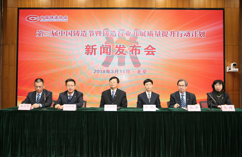 ![]() “第三屆中國鑄造節暨鑄造行業開展質量提升行動計劃”新聞發布會在京舉辦 2018年3月14日,中國鑄造協會在北京機械科學研究總院會議室隆重舉辦了“第三屆中國鑄造節暨鑄造行業開展質量提升行動計劃” 新聞發布會,36家主流工業媒體和鑄造行業媒體派代表參加。中國機械工業聯合會執行副會長兼秘書長趙馳,機械科學研究總院有限公司董事長王德成,中國鑄造協會常務副會長張立波、執行副會長兼秘書長溫平、執行副會長范琦、常務副秘書長張志勇,中機寰宇認證檢驗有限公司董事長黃雪等領導,以及機械汽車展覽聯合會、中國機床總公司、中國機械通用零部件工業協會、中國工程機械工業協會、中國內燃機工業協會、中國塑料機械工業協會、中國軸承工業協會、中國機電一體化技術應用協會、中國鍛壓協會、中國電工技術學會、中國儀器儀表學會等鑄造下游17家行業組織與企業,冶金工業規劃研究院、中機生產力促進中心、環保部環境工程評估中心等6家合作單位負責人出席了此次會議。