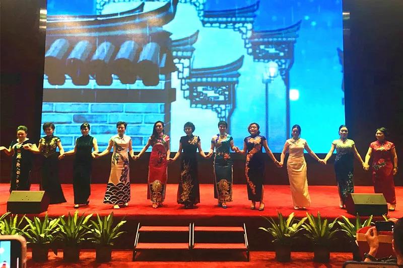 理事成員表演的《旗袍走秀》 頒獎儀式結束,文藝表演大賽正式開始。與會嘉賓一邊品嘗美酒佳肴,一邊欣賞精彩文藝節目。由香港鑄造業總會理事成員排練的《旗袍走秀》領銜登場,隨后,聯志工業有限公司選送的舞蹈《開門紅 》、力勁機械國際有限公司選送的舞蹈《花式鼓舞》、順景鋁合金模制造廠選送的舞蹈《煙花三月》、嘉瑞集團有限公司選送的舞蹈《C哩C哩》、東莞市肯納特壓鑄特鋼有限公司選送的節目《川普變臉-國粹》依次出演,走秀、舞蹈、變臉節目精彩紛呈,引人入勝。