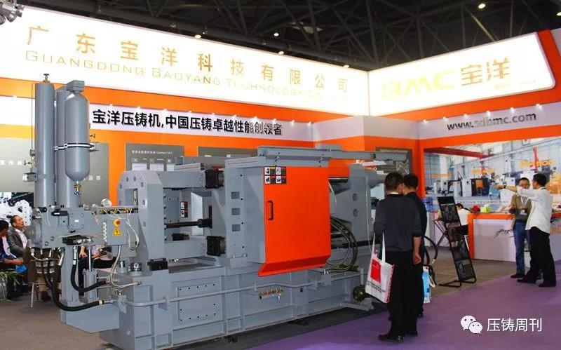 HDC1300-SF冷室壓鑄機(jī) 哥林柱采用雙應(yīng)力釋放槽結(jié)構(gòu),大大減少了拉伸應(yīng)力和剪切應(yīng)力。鎖軸采用38CrMoAI材質(zhì)并經(jīng)氮化處理,超大直徑,比傳統(tǒng)的40Cr材料使用壽命長大大提升。調(diào)節(jié)螺母采用內(nèi)澆筑鋁青銅,保證調(diào)模順暢,有效防止調(diào)模不動,保護(hù)哥林柱螺紋。中板增加支撐筋板結(jié)構(gòu),有效降低中板的變形量。HDC系列冷室壓鑄機(jī)機(jī)身采用工字鋼結(jié)構(gòu)并經(jīng)過退火工藝去應(yīng)力處理,機(jī)身抗扭曲能力和剛性大大加強(qiáng),確保機(jī)器長時間使用的整體精度。 廣東寶洋:基于創(chuàng)新壓射系統(tǒng)的EM系列冷室壓鑄機(jī) 廣東寶洋科技有限公司(BMC)成立于2003年,是一家專業(yè)提供冷室壓鑄機(jī)、熱室壓鑄機(jī)及提供整體壓鑄技術(shù)解決方案的裝備制造企業(yè)。壓鑄設(shè)備廣泛應(yīng)用于航天工業(yè)、汽車工業(yè)、機(jī)械醫(yī)療、IT、家居等工業(yè)領(lǐng)域的壓鑄件生產(chǎn)。 在本屆展會上,廣東寶洋展示了其拳頭產(chǎn)品——融入創(chuàng)新科技的EM系列冷室壓鑄機(jī)。眾所周知,壓射系統(tǒng)系壓鑄機(jī)最核心的部分,廣東寶洋EM系列冷室壓鑄機(jī)采用多項顛覆性創(chuàng)新設(shè)計,使得壓射系統(tǒng)更穩(wěn)定可靠、精準(zhǔn)高效、高響應(yīng)等。