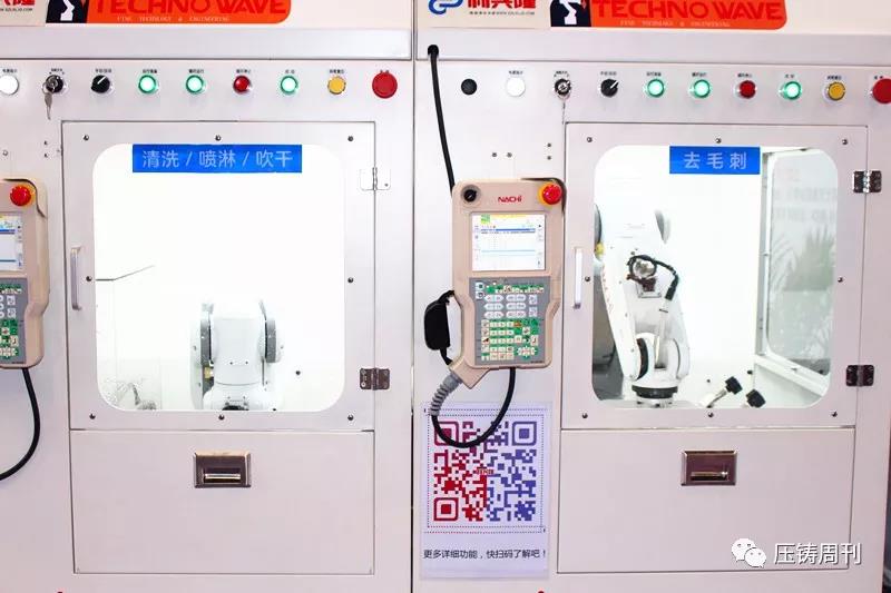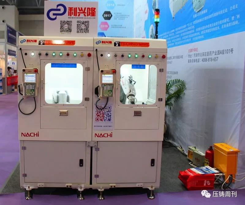 青島中冶坩堝產(chǎn)品 本屆展會上,青島中冶攜兩款型號分別為CN250、CN500的石墨坩堝亮相,向西南地區(qū)用戶展示其金屬熔煉產(chǎn)品解決方案以及公司生產(chǎn)能力。據(jù)了解,青島中冶坩堝產(chǎn)品具有傳導(dǎo)熱快、使用壽命長等優(yōu)點,而其在耐火材料領(lǐng)域深耕多年,使得其掌握了成熟材料技術(shù)、生產(chǎn)工藝,以及極強(qiáng)的提供解決方案的能力。 深圳利興隆:去毛刺清洗多功能系統(tǒng)收追捧 為更好的滿足實現(xiàn)廣大客戶對低成本,高效率的自動化生產(chǎn)的迫切需求,經(jīng)過12個月的努力,深圳市利興隆機(jī)電設(shè)備有限公司與日本太威機(jī)械共同研發(fā)出了一套集成了機(jī)器人去毛刺,機(jī)器人高壓清洗的全自動化去毛刺及清洗系統(tǒng)。在本屆立嘉壓鑄展商,深圳利興隆攜該全新去毛刺機(jī)清洗系統(tǒng)亮相,受到現(xiàn)場觀眾的追捧。