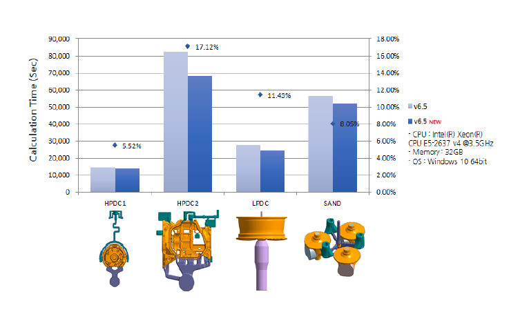 UPDATE – anySOLVER 分析速率提升 通過流動分析,熱/凝固分析運算法則的并行處理最優(yōu)化,將流動凝固分析時間減少最多17%。