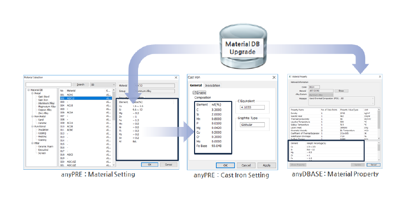 UPDATE – anyDBASE 添加化學組織數(shù)據(jù) 追加了200余種合金的組織信息,可以查看熱物性適用的代表性鑄造合金。新添加的組織信息在鑄鐵模塊中進行設(shè)置時可以被激活,并且可以在鑄鐵模塊中更改組織信息。