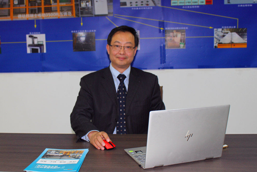 廣東德琺麒總經理 蒲昌月先生 智能壓鑄島是汽車零部件壓鑄生產的發展趨勢,尤其在大型壓鑄機使用、大型部件壓鑄成型方面。日前,廣東省工信廳把“汽車零部件高效智能壓鑄島系統開發與應用”列入未來三年的技術攻關項目之一,資助1000萬元開展以汽車的發動機缸體、缸蓋、變速箱端蓋、一體式減震塔懸掛等重要零部件的壓鑄成型關鍵技術、裝備及機器人集成系統開發。 廣州德琺麒自動化技術有限公司(“廣州德琺麒”)系行業領先的智能自動化壓鑄技術及生產單元解決方案提供商。公司創辦人蒲昌月先生在壓鑄單元集成領域擁有20多年技術沉淀和實踐經驗。日前,廣州德琺麒為廣東鴻特科技股份有限公司成功開發出一套雙聯壓鑄島,為一套由2臺大型壓鑄機+7套機器人為核心設備組成的智能自動化壓鑄單元。此乃壓鑄行業數一數二的雙聯壓鑄島項目。其技術水平和參數指標,均達到以上技術攻關項目的要求。