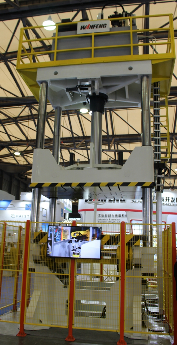 萬豐科技大噸位高速切邊機 萬豐科技于2012年成功研發第一代連續式低壓鑄造機,去年首次亮相國際鑄造展,正式推向市場。此次展出的改良型連續式低壓鑄造機打破傳統模式,以智能引領未來。管理系統具有自動識別、故障判定提醒等功能,實現簡易操作,奠定智能鑄造基礎。配套連續式保溫爐,實現連續式生產,不僅節能降耗,降低成本,更可提升班產20%以上。
