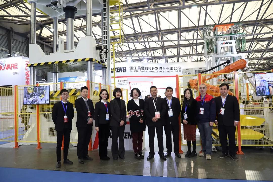 浙江萬豐科技部分管理層與參展團隊 大噸位高速切邊機可配套3200T-4500T壓鑄機,具有切邊高效、定位精準、換模快速、自動清理鋁渣等功能。可與工業機器人交互使用,整合鑄件打磨清理,對切邊后的鑄件進行進一步清理,替代人工完成清理打磨作業,實現高壓鑄造的智能化、無人化生產模式和管理。同時,搭配全新壓鑄島物聯網管理系統,實現設備的實時監控、報警、數據匯總,如班產、能耗、OEE等統計分析,為客戶提供完善的智能化管理。