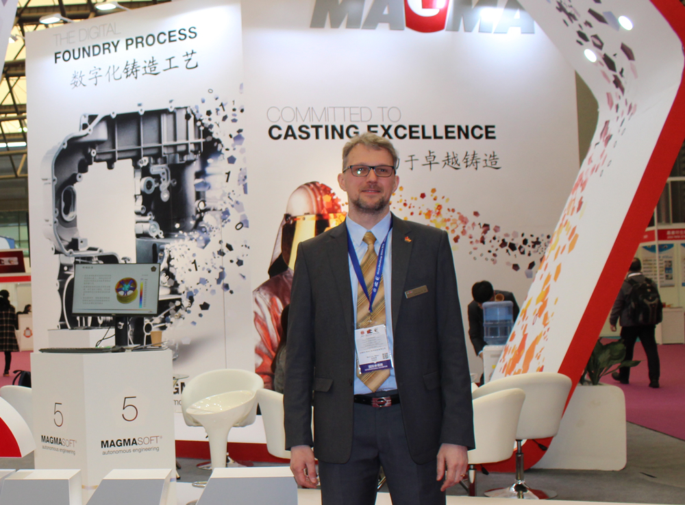 安保能展示的鋁合金熔煉設(shè)備模型 保定安保能專注于鋁合金熔煉技術(shù)及裝備研發(fā)30余年,通過(guò)不斷技術(shù)創(chuàng)新,掌握鋁合金熔煉設(shè)備的核心技術(shù),并針對(duì)不同客戶的實(shí)際需求,開(kāi)發(fā)出鋁液中遠(yuǎn)距離輸送技術(shù)、高速凈化鋁液轉(zhuǎn)運(yùn)包技術(shù)、鋁液在線凈化技術(shù)、高效鋁渣回收處理技術(shù)等;推出包括高效等速等溫鋁合金溶解爐組、再生鋁自動(dòng)鋁鐵分離爐組、鋁合金熔煉爐、鋁液中遠(yuǎn)距離運(yùn)輸裝備等有技術(shù)含量的熔煉設(shè)備。 MAGMA中國(guó):全方位推介新版本MAGMASOFT®5.4 邁格碼(蘇州)軟件科技有限公司(“MAGMA中國(guó)”),主要推介其目前最新版本的鑄造模擬分析軟件MAGMASOFT®5.4,希望以此來(lái)告訴用戶“未來(lái)鑄造將是怎樣的”。MAGMASOFT®5.4在高壓模塊里加入了料筒的模擬,它讓用戶更好地了解金屬液從給料、穩(wěn)料到壓射充型的整個(gè)過(guò)程中溫度、速度、卷氣和料筒變形等整個(gè)變化過(guò)程。同時(shí)也對(duì)噴涂、冷卻及熱平衡做了進(jìn)一步的優(yōu)化,使各項(xiàng)參數(shù)更加貼近實(shí)際的鑄造過(guò)程。