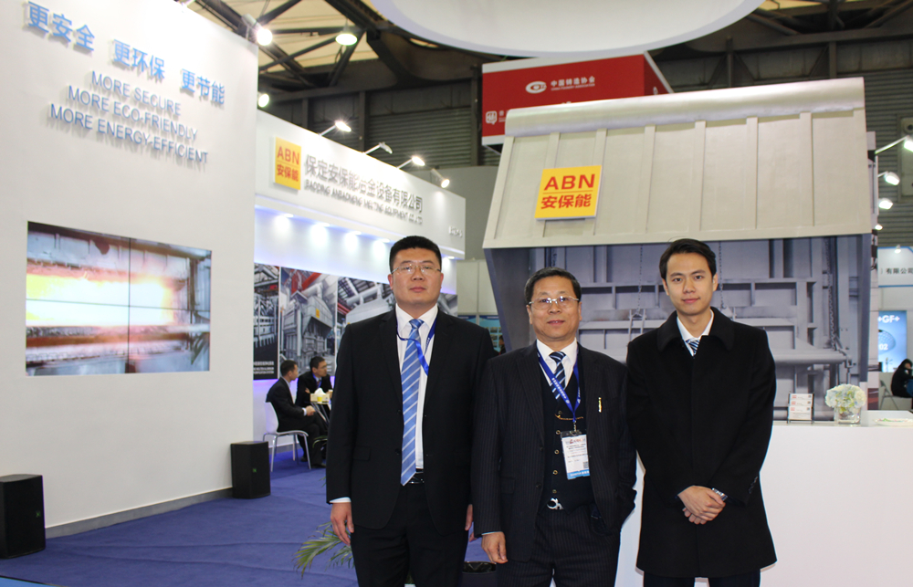 安保能主要領(lǐng)導(dǎo)親臨展會(huì)現(xiàn)場(chǎng) 本次展會(huì),保定安保能推介的高效等速等溫鋁合金溶解爐組。該溶解爐組主要用于熔解鋁錠、各種鋁屑及廢料打包塊等固體料,利用等速等溫熔解技術(shù)、廢煙氣凈化技術(shù)及有機(jī)可燃物“補(bǔ)給燃燒”充分再利用技術(shù),解決熔解行業(yè)在環(huán)境污染、金屬損耗高、能耗高等難題。生產(chǎn)現(xiàn)場(chǎng)無(wú)煙無(wú)氣味,金屬燒損小于0.3%,雙對(duì)流循環(huán)系統(tǒng),具有除氣渣、凈化熔體、成份和溫度均勻等功能,并可實(shí)現(xiàn)智能化生產(chǎn)。