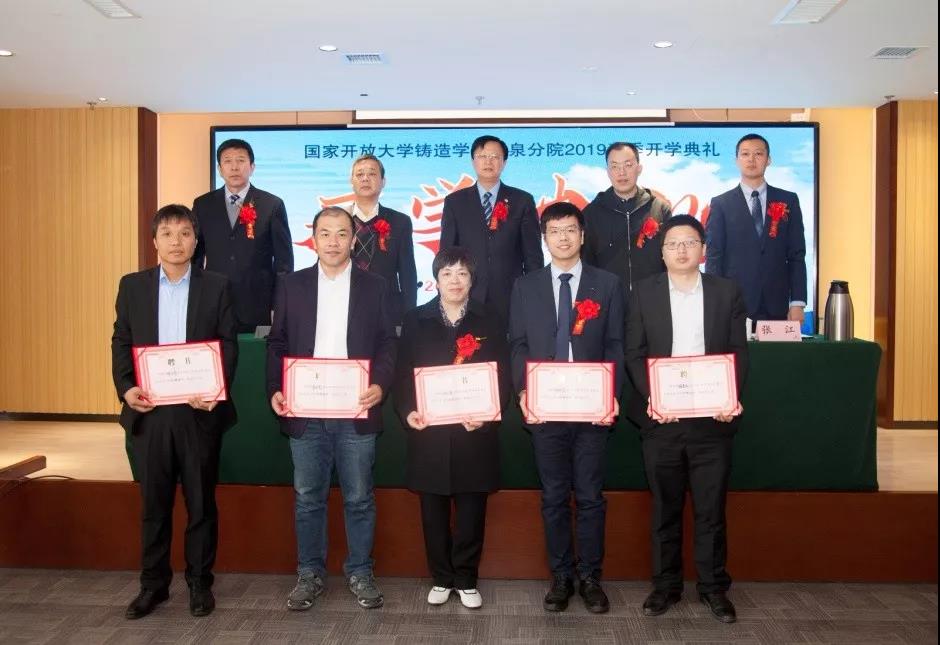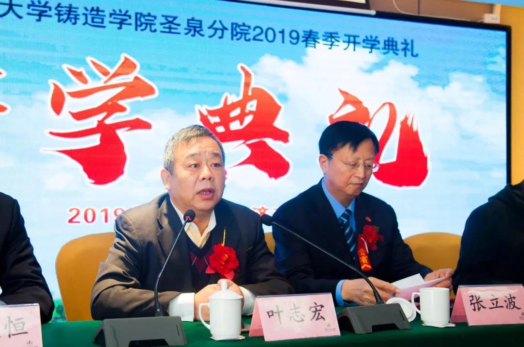 ![]() 開學典禮由圣泉分院常務副院長王軍主持,并全程進行了網絡直播。典禮在莊嚴的國歌聲中開始。 4月2日上午,國家開放大學鑄造學院圣泉分院2019春季開學典禮在濟南隆重舉行。中國鑄造協會會長、國家開放大學鑄造學院院長張立波,中國鑄造協會副監事長、國家開放大學鑄造學院執行副院長支曉恒,國家開放大學教務部部長葉志宏,國家開放大學教務部副部長鄭潔,圣泉集團總裁兼圣泉分院院長唐地源,山東鑄造協會秘書長張江,中國鑄造協會職教中心主任景立文,鑄造學院院長助理李子軍,國家開放大學教務部考風考紀科科長潘焦萍,國家開放大學教務部合作辦學辦公室副主任王國鵬,圣泉集團副總裁祝建勛,圣泉集團工業品營銷總監薛峰,圣泉集團鑄造材料銷售總監袁永等領導出席典禮。本次典禮還特邀山東省重要鑄造企業領導出席:濟南重汽集團濟南動力有限公司總經理安波、煙臺勝地汽車零部件制造有限公司副總經理鄭云霞、山東豪邁機械科技股份有限公司鑄造事業部總經理姚遠、玫德集團玫德大學院長陳蔚、山東匯豐鑄造科技股份有限公司總經理劉慶坤、淄博乾能鑄造科技有限公司董事長王峰、山東豐晃鑄造有限公司總經理趙學通、山東銀鷹炊事機械有限公司總經理李忠民。 張立波會長在開學典禮上作了重要發言,他指出,中國鑄造協會與國家開放大學合作成立鑄造學院,旨在為鑄造行業提供人才學歷和能力提升的渠道,圣泉作為鑄造材料的大型生產企業,規模產能位居世界前列,圣泉分院的成立,為在職員工提升學歷和技術水平提供了優質平臺,必將推動山東省鑄造行業的人才培養。張會長把第一期學生比喻為“黃埔一期”學員,他們將實現不離崗、不離廠的“大學夢”。