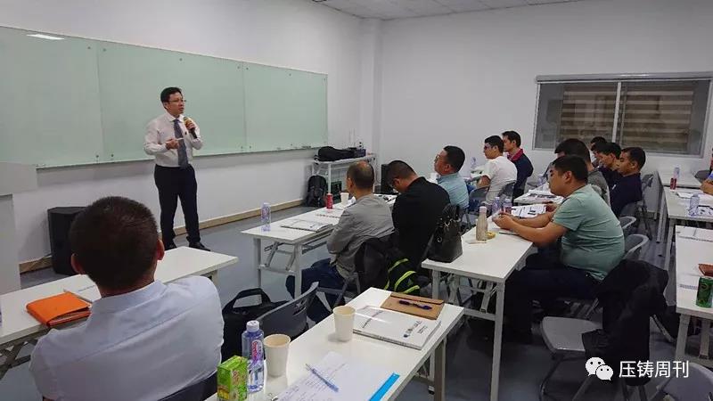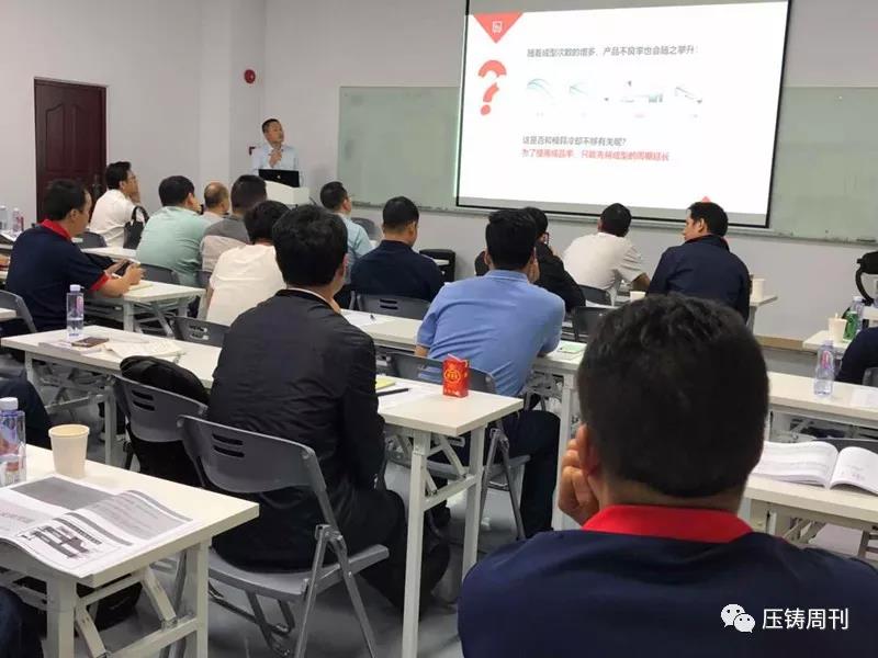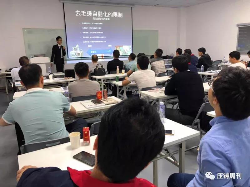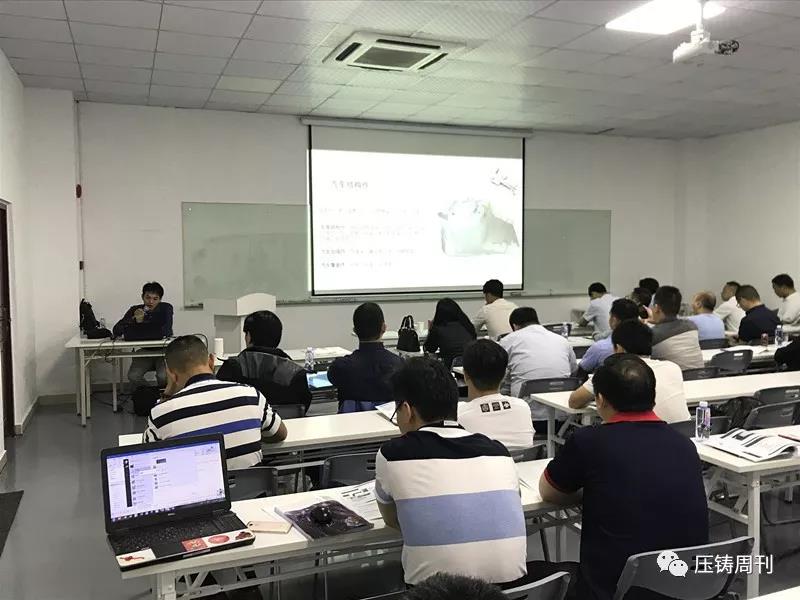 新臺(tái)通商總經(jīng)理邱坤彰先生發(fā)言 隨后,研習(xí)會(huì)正式開始,第一天的報(bào)告主題包括:壓鑄產(chǎn)業(yè)概述,鋅壓鑄件流紋分析和切線型流道設(shè)計(jì),超高速/超低速/高精度鋁壓鑄技術(shù)與特殊功能運(yùn)用,工業(yè)4.0壓鑄數(shù)據(jù)管理系統(tǒng)中舊機(jī)與新機(jī)集中數(shù)據(jù)管理案例,高品質(zhì)省能源鋁湯溶解技術(shù),高品質(zhì)熔湯處理技術(shù),鋁壓鑄模具設(shè)計(jì)與不良對(duì)策,高品質(zhì)壓鑄進(jìn)階技術(shù)與設(shè)備:點(diǎn)冷系統(tǒng)/局部擠壓鑄造/PF吹氧真空鑄造等。