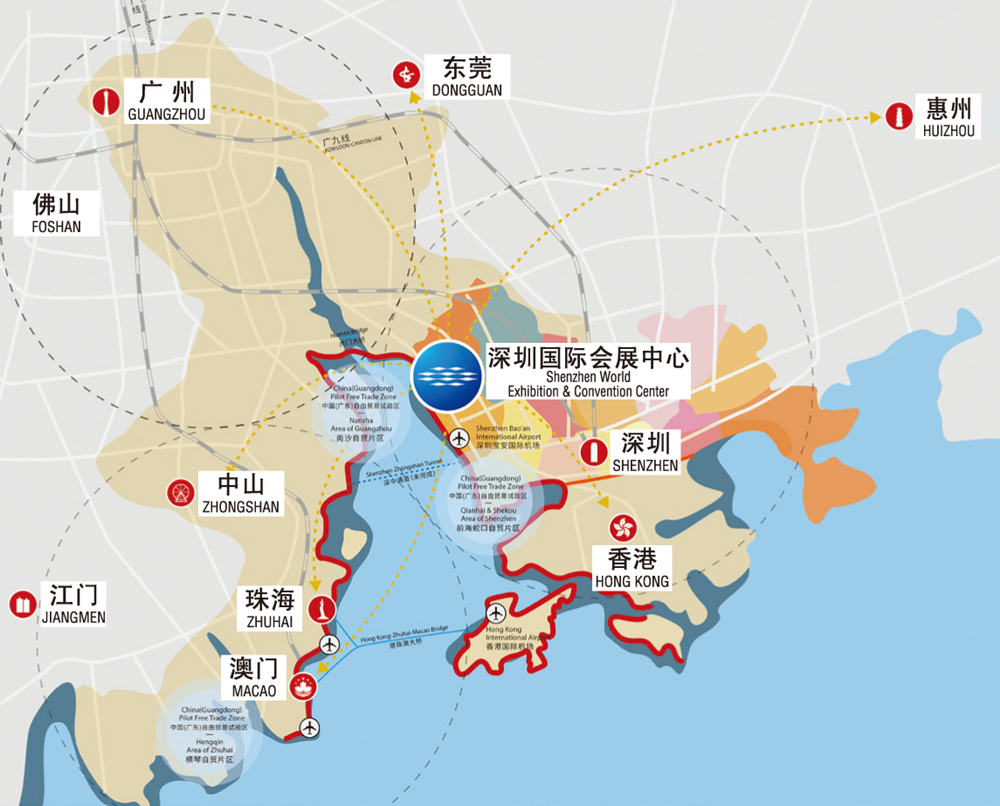 區位優勢 與此同時,新會展中心交通便利,機場、碼頭近在咫尺,距離深圳機場7公里,緊鄰深圳機場碼頭(機場福永碼頭);高速公路、地鐵亦是星羅密布,直達展館;公路縱橫交錯,臨近的正在修建的“深中通道”直連珠江西岸,聯通中山、珠海、佛山等大灣區其他城市,系灣區中心、交通要塞,區位優勢顯著。