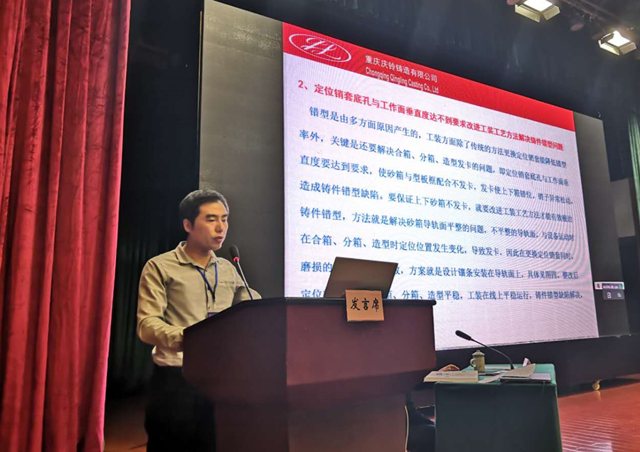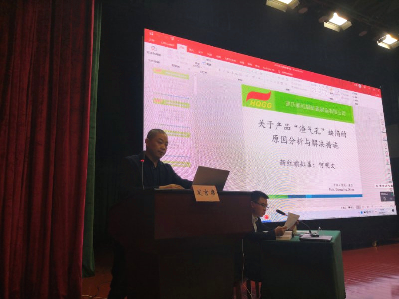 重慶新紅旗缸蓋制造有限公司何明文先生以《關(guān)于產(chǎn)品“渣氣孔”缺陷的原因分析與解決措施》為題作報(bào)告