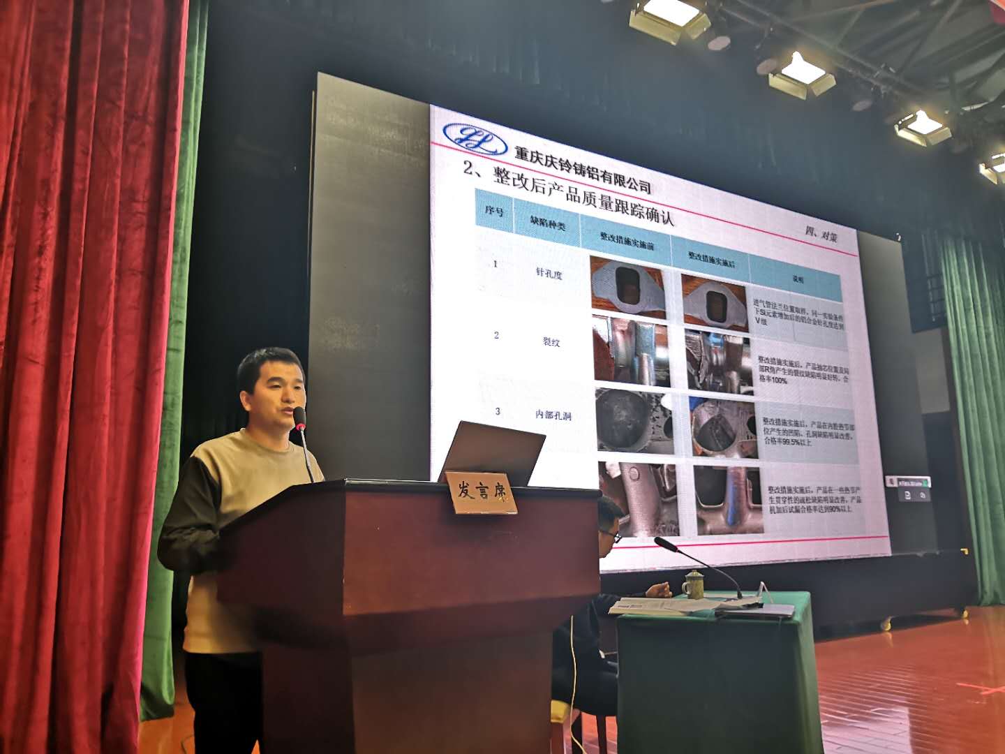 重慶慶鈴鑄鋁有限公司雷陽陽先生以《關(guān)于重力澆注管類件管壁疏松泄漏、內(nèi)部孔洞缺陷的原因分析與解決措施》為題作報(bào)告
