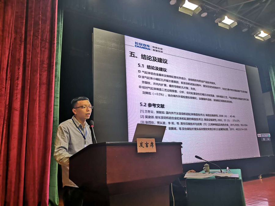 重慶長安汽車股份有限公司制造中心廖治東先生以《某型發(fā)動(dòng)機(jī)鋁合金氣缸體缸孔開裂失效分析及解決》為題作報(bào)告