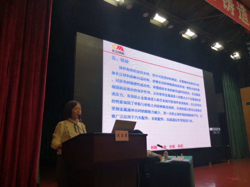 重慶長江造型材料(集團(tuán))股份有限公司的王麗峰女士以《一種耐高溫材料在解決鑄件粘砂缺陷中的應(yīng)用》為題作報(bào)告