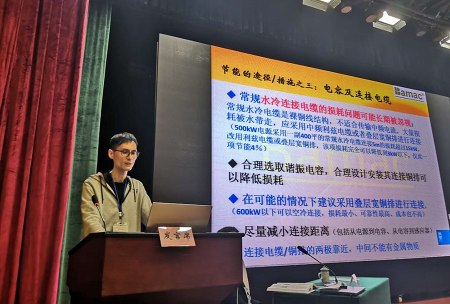 重慶可控半導(dǎo)體變流技術(shù)研究所蘇凌云工程師以《DSP+IGBT 全風(fēng)冷中頻感應(yīng)加熱設(shè)備在鑄造行業(yè)的運(yùn)用》為題作報(bào)告