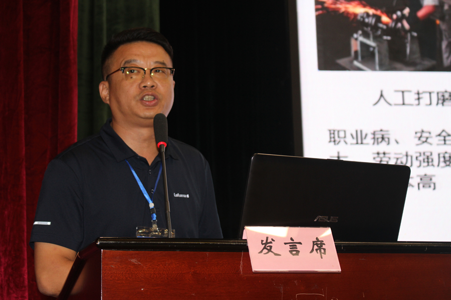 迪砂(常州)機(jī)械有限公司陳江瑜銷售經(jīng)理以《節(jié)能高效的表面處理解決方案》為題作報(bào)告