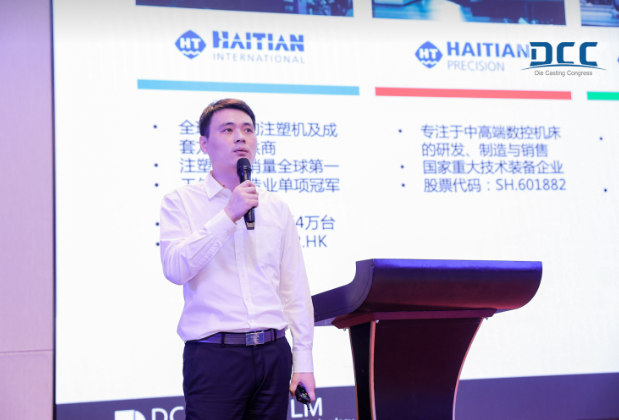 海天金屬技術總監徐建華做《海天金屬8800T超大型壓鑄機助力汽車輕量化發展》報告。