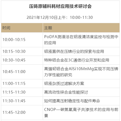 ![]() 第3屆東莞壓鑄節(jié) 12月10日-13日星期五-星期一 主辦方:中鑄科技 協(xié)辦方:華墨展覽 獨家合作媒體:壓鑄周刊 活動時間:2021年12月10日~13日 活動地點:廣東現(xiàn)代國際展覽中心7號館(東莞厚街) 費用:全程免費 活動背景 2019年中鑄科技主辦了壓鑄人自己的節(jié)日首屆“東莞壓鑄節(jié)”,并取得了圓滿成功。之后的2020年的第2屆“東莞壓鑄節(jié)”雖有疫情影響,但仍然更上一層樓。今年我們將繼續(xù)迎來第3屆“東莞壓鑄節(jié)”,活動更加豐富,規(guī)模更大! 2021年12月10日-13日,通過4天的時間,壓鑄節(jié)上將進(jìn)行壓鑄行業(yè)新技術(shù)發(fā)布,壓鑄技術(shù)交流,壓鑄知識分享,鑄件門診,壓鑄知識禮包派發(fā)和供需對接等活動,力爭讓每位參加的壓鑄同仁學(xué)到知識,得到技術(shù),交到朋友,找到資源,滿載而歸。 專題研討會 活動安排 隨著壓鑄行業(yè)競爭的加劇,降本、增效、節(jié)能、環(huán)保、自動化等需求越來越迫切,壓鑄企業(yè)急需找到對應(yīng)的解決方案或提供方案的優(yōu)質(zhì)配套企業(yè),但是在信息大爆炸的時代,想快速而準(zhǔn)確的找到靠譜的信息對他們來說非常困難。 中鑄平臺經(jīng)過多年的積累,匯集了壓鑄行業(yè)內(nèi)的優(yōu)質(zhì)資源,充分掌握了行業(yè)最新技術(shù)動向,在東莞壓鑄節(jié)這個平臺,策劃了五個專題研討會,邀請近50家行業(yè)內(nèi)的優(yōu)質(zhì)企業(yè)和創(chuàng)新企業(yè),分享他們的新技術(shù)和實用解決方案。