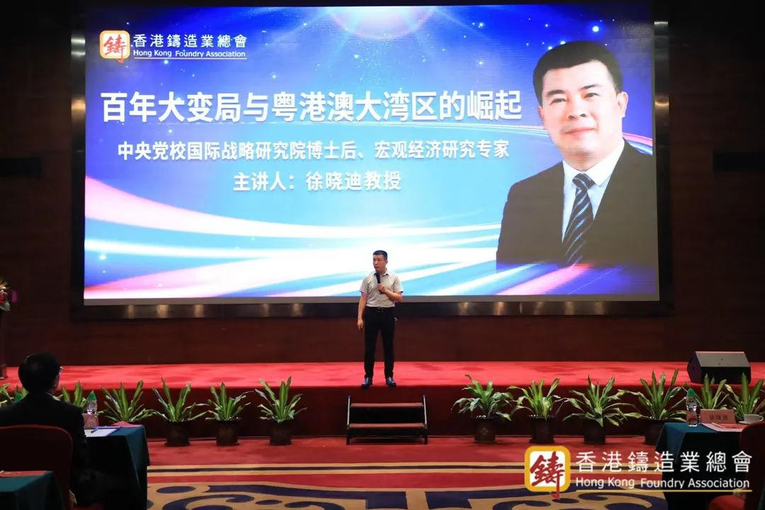 中央黨校國際戰略研究院、宏觀經濟研究專家徐曉迪教授作報告 在香港鑄造業總會2022年會員代表大會正式開始之前,主辦單位還邀請了中央黨校國際戰略研究院、宏觀經濟研究專家徐曉迪教授以《百年大變局與粵港澳大灣區的崛起》為題,分享了當今世界處于百年未有之大變局,在國際力量對比發生深刻變化,國家面臨的挑戰與風險更為復雜的情況下,粵港澳大灣區經濟的崛起之路。 |