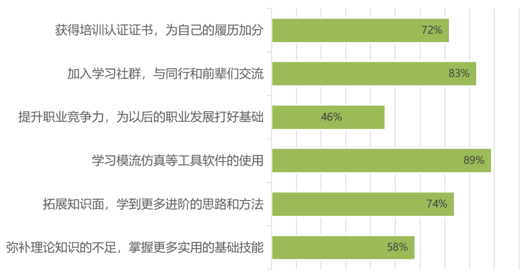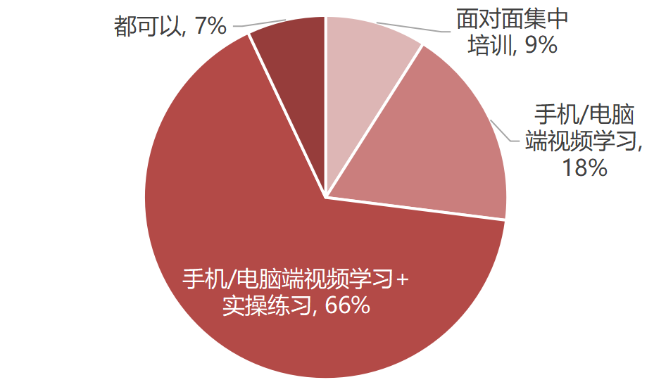 如今工作和家庭壓力不斷攀升,一門合格的培訓課程,首要標準就是“高效”和“實用”,減少時間浪費。訓練營結果顯示,越來越繁忙的壓鑄人們,相較以往的面授課程的形式,也更注重知識在實操層面的落地,傾向“手機/電腦端視頻學習+實操練習”的學員高達66%,可以看出,新時代的壓鑄人們不僅重視理論,也更注重實踐,快速轉化知識點為實用技能。