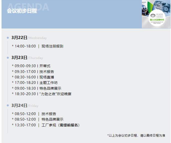 ![]() 隨著節能減排政策的不斷深入,在“碳達峰,碳中和”戰略的背景下,汽車行業迎來史上更為嚴格的油耗及排放標準,由此催生巨大的新能源汽車市場和更大程度的輕量化應用,進而推動壓鑄向大型化、一體化方向發展。 依托合肥新能源汽車產業集群優勢,2023年全國壓鑄行業年會—第十八屆中國國際壓鑄會議將于3月22-24日在合肥香格里拉大酒店舉辦,聚焦壓鑄行業政策、趨勢、市場,新能源汽車,大型一體化壓鑄等話題,配套多元同期活動,與壓鑄同仁共同探討壓鑄產業鏈解決方案及發展方向,助力新能源汽車產業高質量發展,誠邀各位壓鑄同仁蒞臨參會!