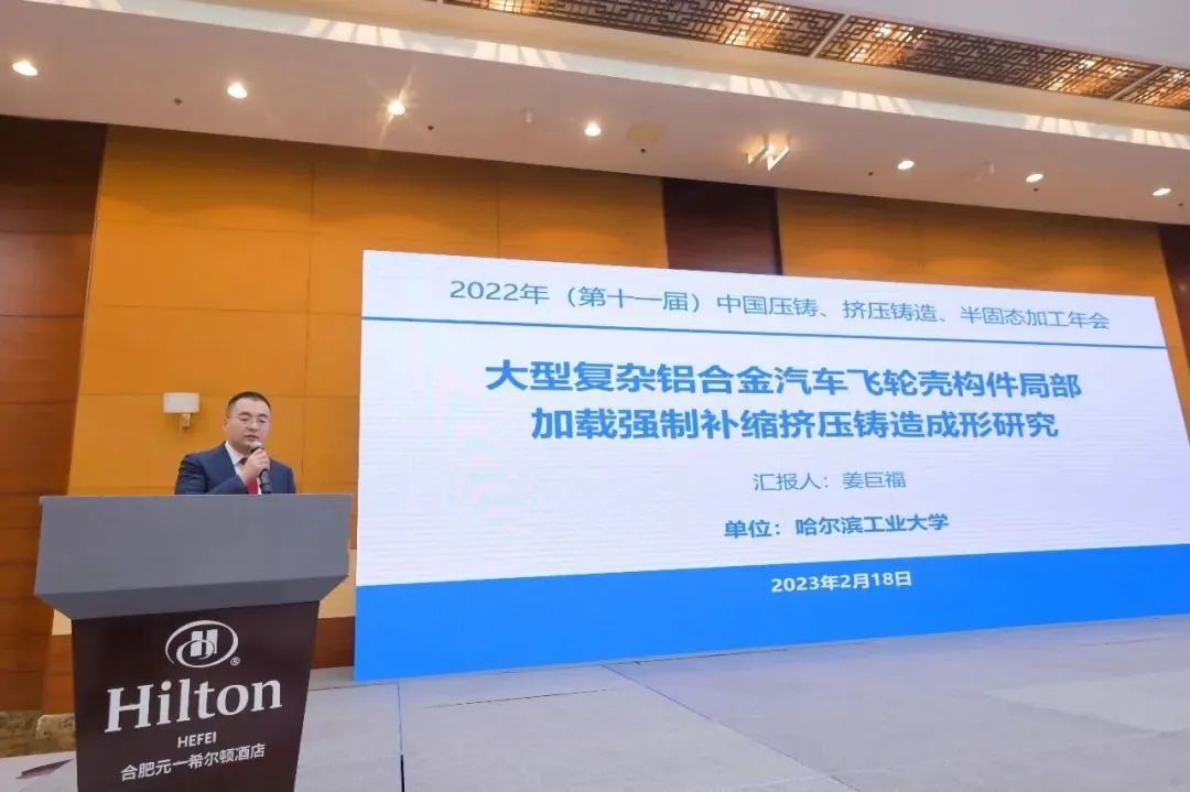 哈爾濱工業(yè)大學姜巨福教授以《大型復雜鋁合金汽車飛輪殼構件局部加載強制補縮擠壓鑄造成形研究》為題作報告