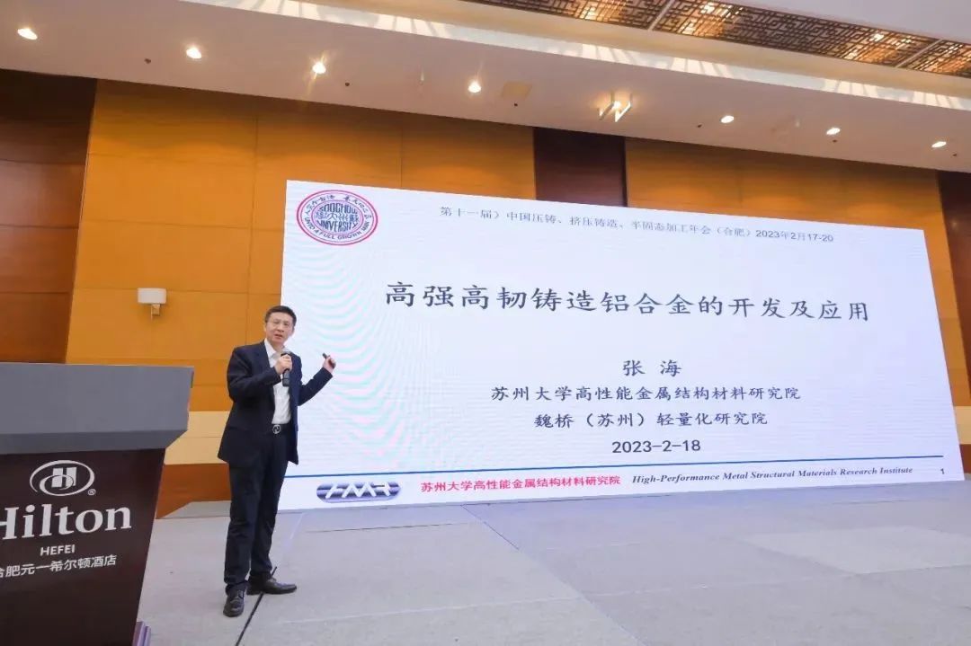 蘇州大學張海教授以《高強高韌鑄造鋁合金的開發(fā)及應用》為題作報告