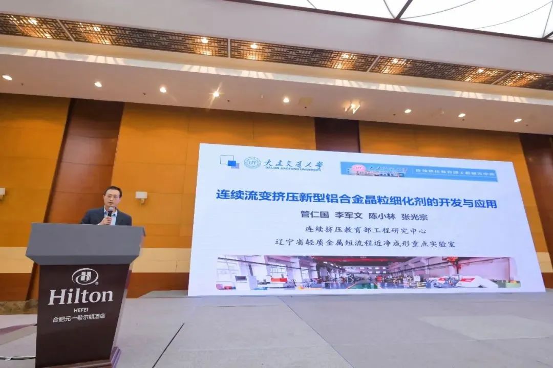 大連交通大學管仁國教授以《連續(xù)流變擠壓新型鋁合金晶粒細化劑的開發(fā)與應用》為題作報告