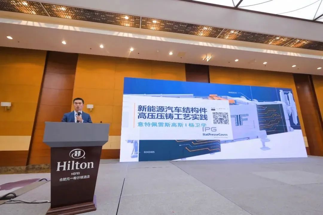 意特佩雷斯壓鑄(上海)有限公司經理楊衛(wèi)學以《新能源汽車結構件高壓壓鑄工藝智能應用實踐分享》為題作報告