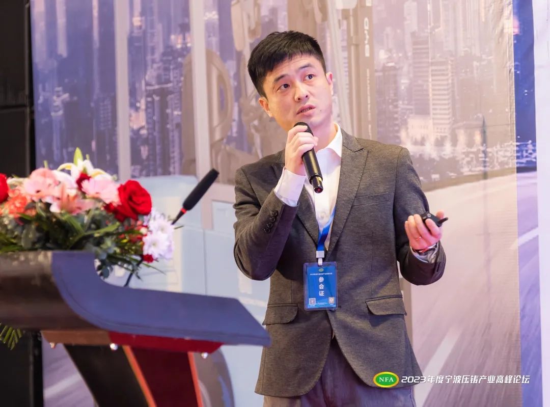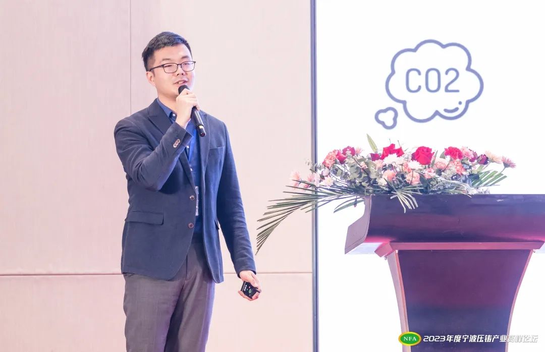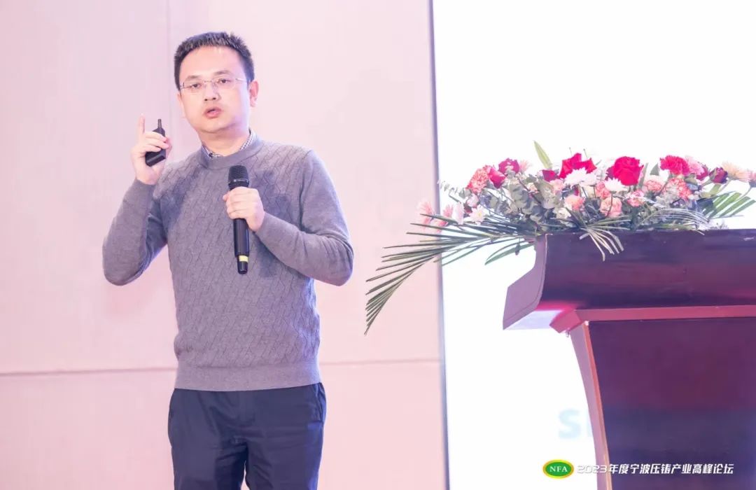 上海鋁連數字科技有限公司聯合創始人熊宇先生作報告 當天下午,大會進行論壇技術主題報告環節。該環節由寧波眾鑫里美科技有限公司總經理陸盈盈女士擔綱主持。大連理工大學周秉文副教授以《高性能輕合金復合場制備技術與缺陷識別》為題作報告;寧波保稅區海天智勝金屬成型設備有限公司高級技術顧問周連君先生以《海天超大型壓鑄機和一體化壓鑄方案》為題作報告;數益工聯創始人/CEO何盛華先生以《基于數據流與價值流的壓鑄行業數字化工廠》為題作報告;浙江碳益科技有限公司商務副總裁高歡先生以《“鑄”就低碳未來-壓鑄行業碳中和策略》為題作報告。