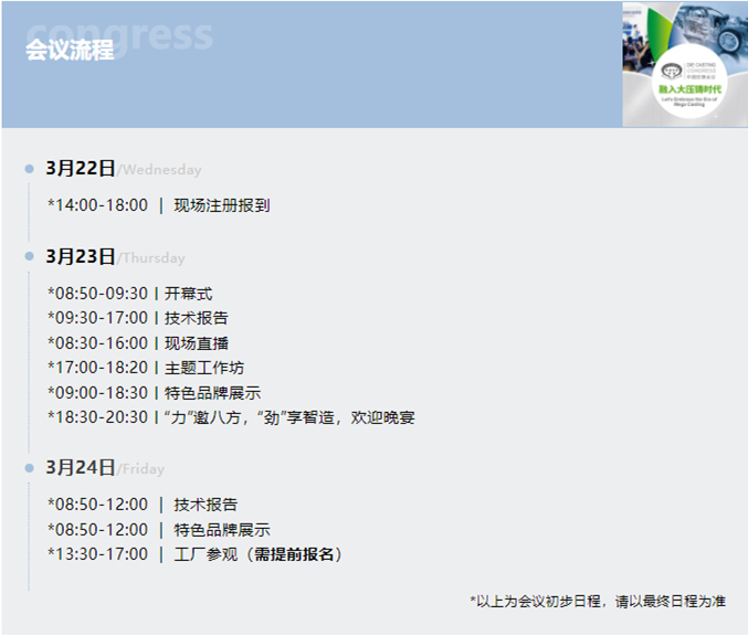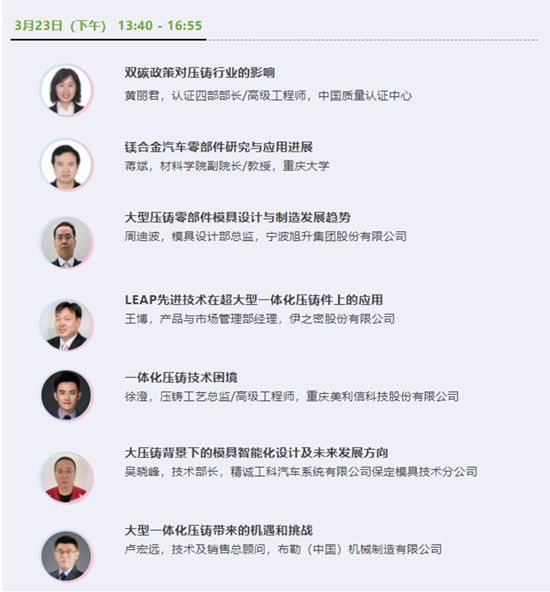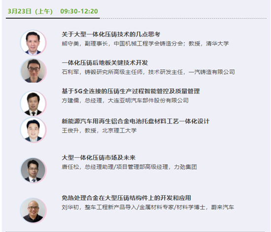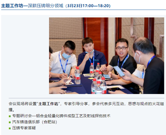 2023全國壓鑄年會將于“3月22—24日”在合肥香格里拉大酒店舉辦,會議以“新能源汽車制造領航大壓鑄時代”為主題,聚焦行業(yè)熱點話題:涉及新材料研發(fā)、汽車主機廠產(chǎn)品及工藝設計、壓鑄上市公司技術及管理經(jīng)驗分享等;內(nèi)容覆蓋壓鑄全產(chǎn)業(yè)鏈:囊括設計、材料、模具、裝備、生產(chǎn)及用戶端等;700+參會代表:集結整車廠、壓鑄廠、高校及科研機構以及知名配套商等。誠邀各位壓鑄同仁蒞臨!