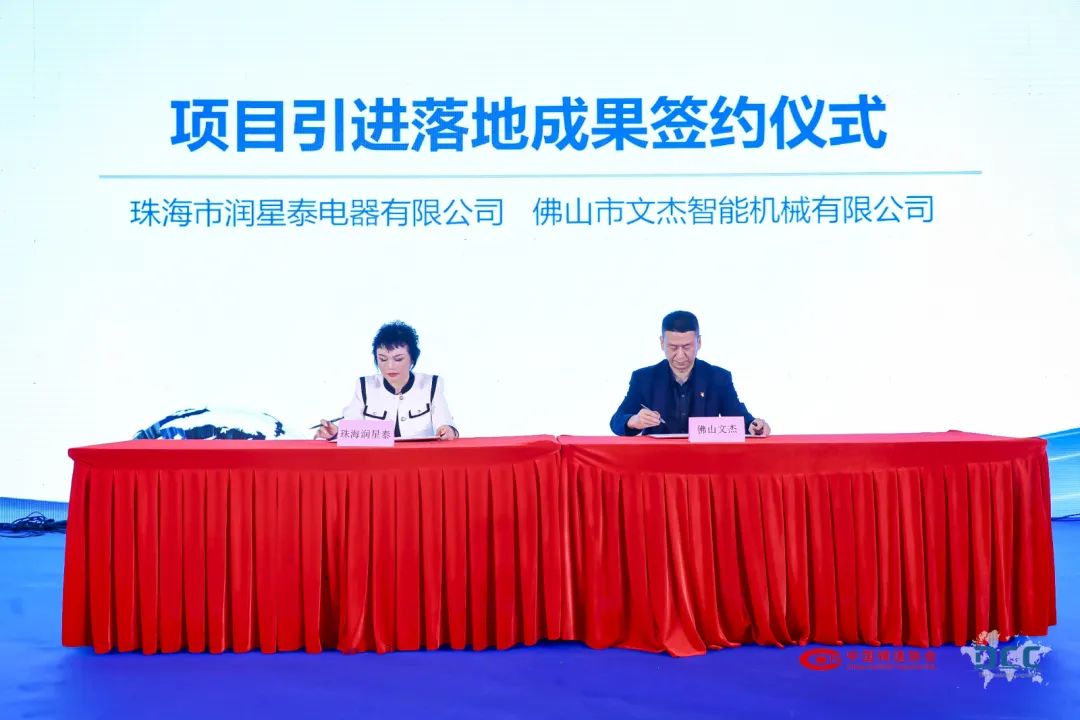 開幕式上,珠海市潤星泰電器有限公司與佛山市文杰智能機(jī)械有限公司還行了項(xiàng)目引進(jìn)落地成果簽約儀式,與會(huì)代表共見了強(qiáng)企合作結(jié)出的成果。