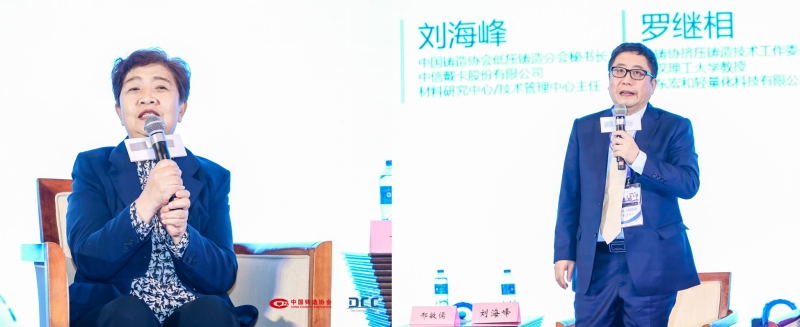 中國鑄造協(xié)會(huì)專家、布勒(中國)機(jī)械制造有限公司首席科學(xué)家盧宏遠(yuǎn),中國鑄造協(xié)會(huì)專家委員會(huì)委員、中國一汽教授級(jí)高工、高級(jí)經(jīng)理邢敏儒,中國鑄造協(xié)會(huì)低壓鑄造分會(huì)秘書長、中信戴卡股份有限公司材料研究中心/技術(shù)管理中心主任劉海峰,中國鑄造協(xié)會(huì)擠壓鑄造技術(shù)工作委員會(huì)首席專家、武漢理工大學(xué)教授、山東宏和輕量化科技有限公司技術(shù)顧問羅繼相,中國鑄造協(xié)會(huì)半固態(tài)工作委員會(huì)秘書長、有研工程技術(shù)研究院有限公司正高級(jí)工程師、博士生導(dǎo)師李大全分別對(duì)話發(fā)聲,現(xiàn)場的分享、觀點(diǎn)的碰撞,為與會(huì)代表在現(xiàn)有的環(huán)境下謀劃發(fā)展、布局產(chǎn)業(yè)新賽道明晰了方向。
